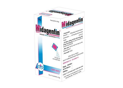 Probenecid: Probenecid làm giảm sự bài tiết Amoxicilin ở ống thận. Sử dụng đồng thời Probenecid với Amoxicillin và axit Clavulanic có thể làm tăng nồng độ Amoxicillin trong máu. Không khuyến cáo dùng đồng thời. Thuốc chống đông máu đường uống: Sử dụng đồng thời thuốc chống đông máu đường uống với Amoxicillin và axit Clavulanic có thể làm kéo dài bất thường thời gian prothrombin. Cần điều chỉnh liều thuốc chống đông đường uống. Allopurinol: Dùng đồng thời Allopurinol với Amoxicillin làm tăng đáng kể tỷ lệ mắc phát ban ở bệnh nhân. Thuốc tránh thai đường uống: Amoxicillin và axit Clavulanic có thể ảnh hưởng đến hệ vi khuẩn đường ruột, dẫn đến giảm tái hấp thu estrogen và giảm hiệu quả của thuốc tránh thai đường uống phối hợp estrogen/ progesterone. Amoxicillin có thể dẫn đến phản ứng dương tính giả trong xét nghiệm đo nồng độ glucose trong nước tiểu.Công dụng Midagentin 250/31,25