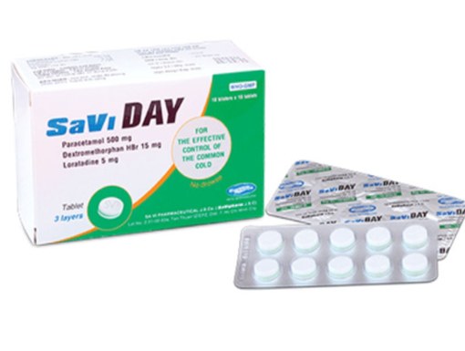 Một số tương tác đã được báo cáo, bao gồm: - Paracetamol: + Metoclopramid, Domperidon: Tăng tốc độ hấp thu của Paracetamol. + Cholestyramin: Giảm hấp thu của Paracetamol. + Các thuốc chống đông: Tăng tác dụng nếu sử dụng Paracetamol dài ngày vì tăng nguy cơ chảy máu. Tuy nhiên ở liều thông thường ảnh hưởng không có ý nghĩa. - Loratadin: + Thuốc ức chế CYP3P4, CYP2D6: Tăng nồng độ Loratadin, do đó tăng các tác dụng phụ. + Ketoconazol, Erythromycin, Cimetidin: Làm tăng nồng độ Loratadin trong huyết tương. - Dextromethorphan HBr: + Rượu: Tăng tác dụng an thần của thuốc này. + Các thuốc IMAOs, thuốc chống trầm cảm, thuốc SSRIs: Nguy cơ xảy ra hội chứng Serotonin dẫn đến thay đổi trạng thái tinh thần, cơn rùng mình, run, tăng huyết áp, rung giật cơ, tăng phản xạ, bồn chồn, toát mồ hôi. + Các thuốc ức chế CYP2D6 như Fluoxetin, Methadon, Paroxetin, Quinidin,... làm tăng nồng độ của Dextromethorphan, làm tăng các tác dụng không mong muốn của thuốc (như mất ngủ, kích động, rung, tiêu chảy, nhầm lẫn, suy hô hấp); và phát triển hội chứng Serotonin. + Quinidin: Tăng nồng độ lên gấp 20 lần Dextromethorphan trong huyết tương làm tăng tác dụng phụ về rối loạn hệ thần kinh trung ương của thuốc này. Để đảm bảo an toàn và hiệu quả, hãy báo với bác sĩ về tất cả các loại thuốc, thực phẩm bảo vệ sức khỏe đang dùng và các bệnh khác đang mắc phải.Công dụng SaVi Day