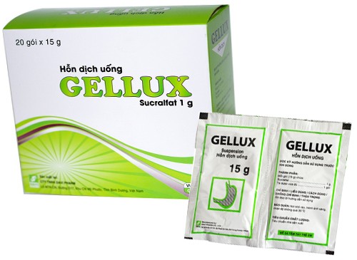 Có thể dùng các antacid cùng với sucralfat trong điều trị loét tá tràng để giảm nhẹ chứng đau. Nhưng không được uống cùng một lúc vì antacid có thể ảnh hưởng đến sự gắn của sucralfat trên niêm mạc. Nên dặn người bệnh uống antacid trước hoặc sau khi uống sucralfat một nửa giờ. Các thuốc cimetidin, ranitidin, ciprofloxacin, norfloxacin, ofloxacin, digoxin, warfarin, phenytoin, theophylin, tetracyclin khi uống cùng với sucralfat sẽ bị giảm hấp thu. Vì vậy phải uống những thuốc này 2 giờ trước hoặc sau khi uống sucralfat.Công dụng Gellux