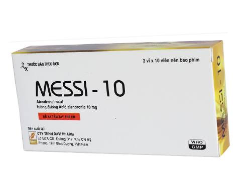 - Estrogen: Chưa xác định tính an toàn và hiệu quả khi sử dụng đồng thời, vì vậy không nên kết hợp. - Các chất bổ sung calci và thuốc chống acid: Làm giảm hấp thu alendronat. Nên uống các thuốc này sau khi uống alendronat ít nhất là nửa giờ. - Các thuốc kháng viêm không steroid: Làm tăng tỷ lệ tác dụng không mong muốn trên đường tiêu hóa khi dùng alendronat ở liều cao hơn 10 mg/ ngày. Nên thận trọng khi kết hợp.Công dụng Messi-10