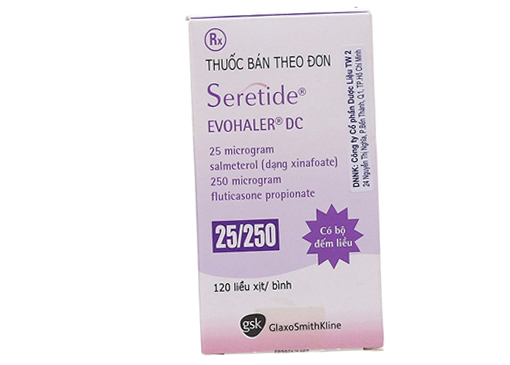 Tránh dùng đồng thời: Ritonavir, thuốc ức chế beta. Thận trọng kết hợp: Thuốc ức chế mạnh CYP3A4.Công dụng Seretide Evohaler DC 25/250 mcg